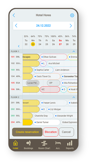 The application also includes a similar occupancy chart from the HORES desktop with a preview of the future and the past.